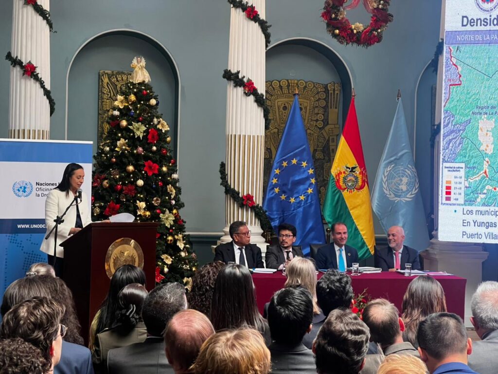El Gobierno boliviano reportó la erradicación o racionalización de 10.001 hectáreas de coca en 2024, un 2,9% menos que en 2023. La UNODC recomendó reforzar los controles, actualizar los estudios de rendimiento del cultivo y fortalecer las estrategias de desarrollo alternativo en las zonas productoras.